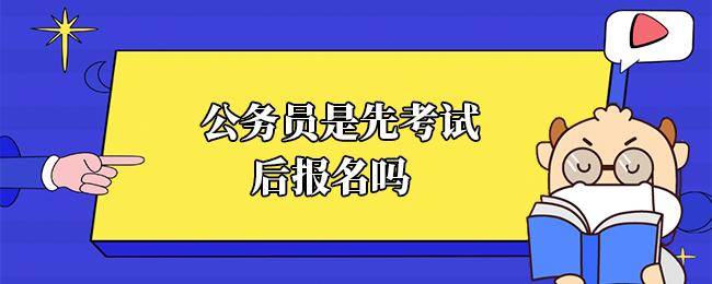 不是,公务员是先报名后考试。公务员考试流程如下:浏览报考信息;选定职位;开始网报:登录报名网站、填写报名信息并上传照片、等待审核、审核通过以后网上缴费、报名成功。报名成功之后按照考试时间参加考试。