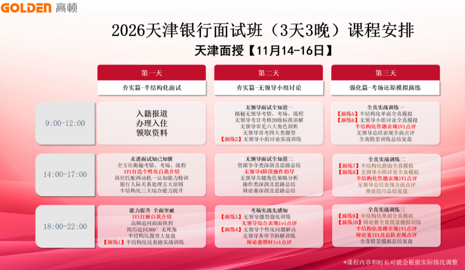 深度还原银行真实面试场景,考官阵容由资深银行HR和前银行面试官组成,通过多次全真模拟,学员可以熟悉面试流程,减少紧张感。
