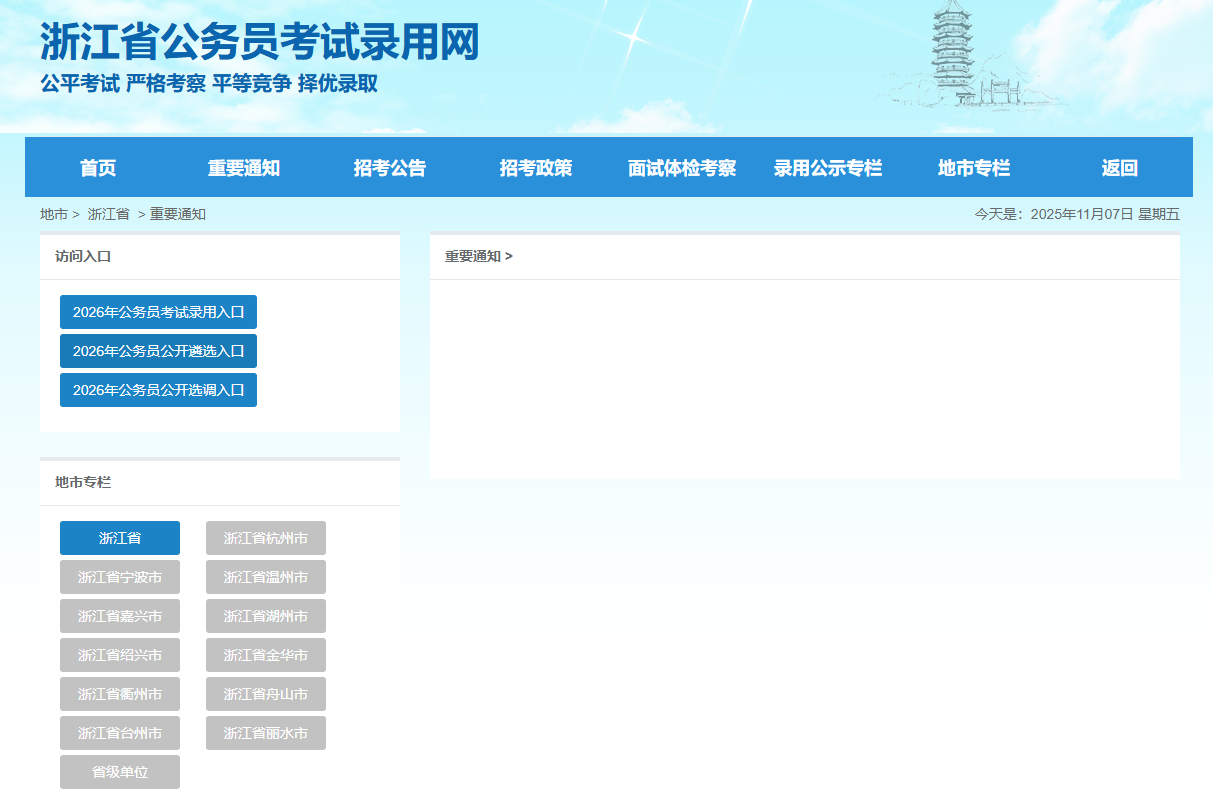 收藏!浙江省公务员考试录用网:gwy.zjks.gov.cn